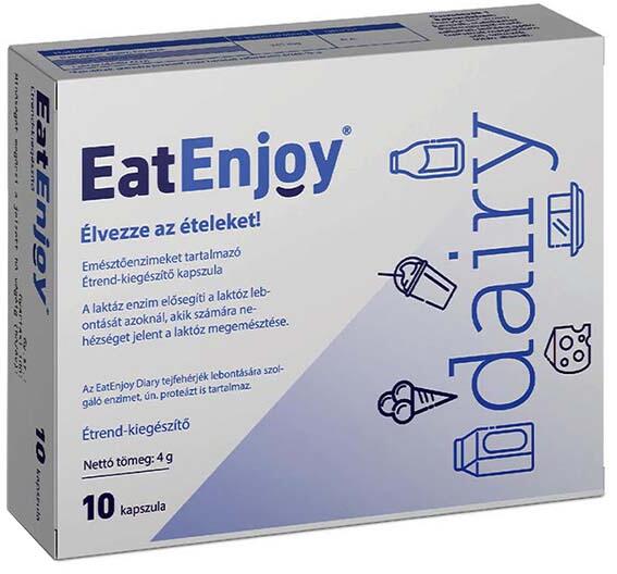 A laktáz enzim elősegíti a laktóz lebontását azoknál, akik számára nehézséget jelent a laktóz megemésztése. Laktázenzim-keveréket tartalmazó étrend-kiegészítő, amely lebontja az intoleranciát előidéző laktózt. Egészséges, kiegyensúlyozott étrend mellett fogyasztandó. Proteáz enzimet is tartalmaz. Az EatEnjoyⓇ Dairy kapszulák segítségével Ön a tejtermékeket a