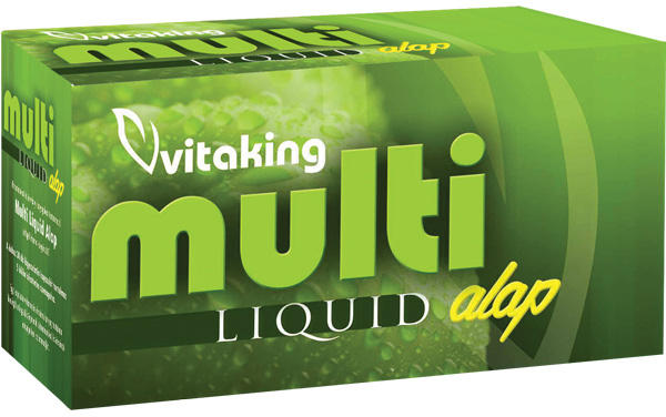 Multivitamin: Vitaking Multi Alap Liquid Multivitamin Folyéko ny vitamin – lágy zselékapszulában Egyed lállóan Multi Liquid Alap komplett folyékony multivitamin, ásványi anyag és nyomelem készítmény lágyzselatin burokban, amely extra mennyiségben tartalmaz a szervezet számára létfontosságú tápanyagokat. Mi van a Multi Liquid Alap dobozban? A doboz öt darab blistert tartalma