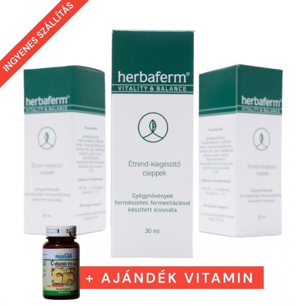 Vásároljon olcsóbban Herbaferm cseppeket! 3db-os Herbaferm csepp csomag, INGYENES kiszállítással, ajándék C vitaminnal! A Herbaferm csepp gyógynövények természetes fermentációjával készül. Hatása azért egyedülálló, mert nemcsak kezel, hanem helyrehoz, azaz megnyugtatja a szervezetet, az egészséges emésztés helyreállításával pedig beindítja a regenerációs folyamatok