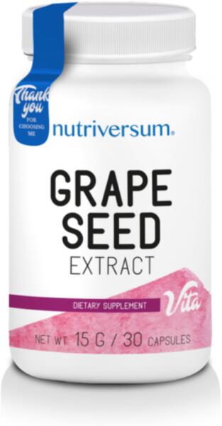 Nagy dózisú szőlőmagkivonat-tartalmú kapszula A VITA - Grape Seed adagonként (1 tabletta) 150 mg szőlőmagkivonatot tartalmaz. A termék hatóanyaga szőlőmagkivonat, amelyet erős antioxidánsként tartanak számon, így segíthet a káros szabadgyökök elleni védelemben. A régóta fennálló használat alapján az a tapasztalat, hogy hozzájárulhat az immunrendszer erősségéhez is.