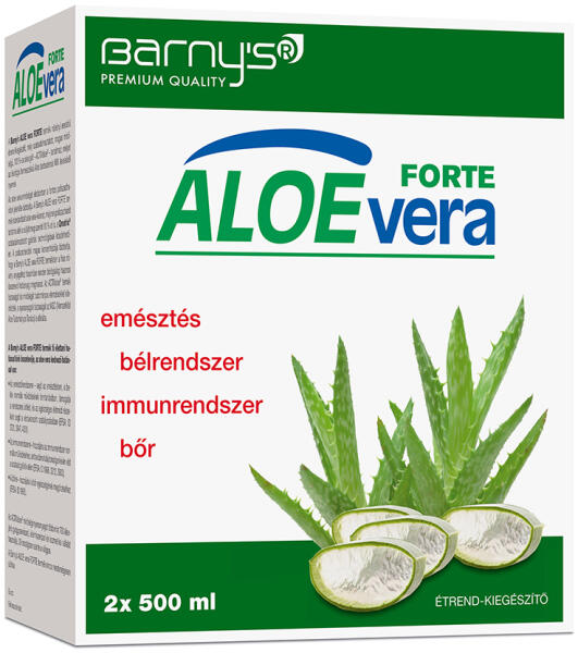 BARNYS ALOE VERA FORTE 2X500MLÖsszetevők: Tisztított víz, Qmatrix® ACTIValoe® (200:1), antioxidáns (citromsav), tartósítószer (nátrium-benzoát, kálium-szorbát). A Barny´s ALOE vera FORTE termék növényi eredetű étrend-kiegészítő, mely szabadalmaztatott, magas minőségű, 100 %-os aloe gélt – ACTIValoe® – tartalmaz, melyet az ökológiai termesztésű Aloe barbadensis M
