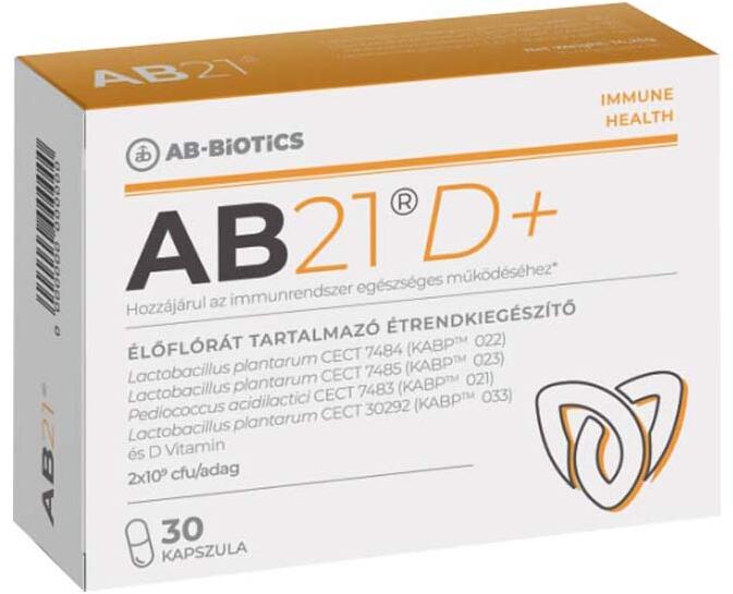 Az AB 21 D+®-ban található baktériumok és a D-vitamin hasznos kiegészítői lehetnek az étrendnek. A D-vitamin támogatja az immunrendszer normál működését, ezért szedése kifejezetten ajánlott a vírus- és egyéb fertőzéseknek kitett időszakban. Az AB 21 D+® élőflórát és D-vitamint tartalmazó étrend-kiegészítő, mely támogatja az immunrendszer normál működését. 1
