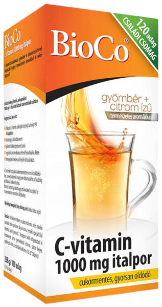 Természetes aromával ízesített, gyömbér és citrom ízű instant italpor készítmény. Természetes aromával ízesített, gyömbér és citrom ízű instant italpor készítmény, melyből 1000 vagy 2000 mg C-vitamint tartalmazó ital készíthető.