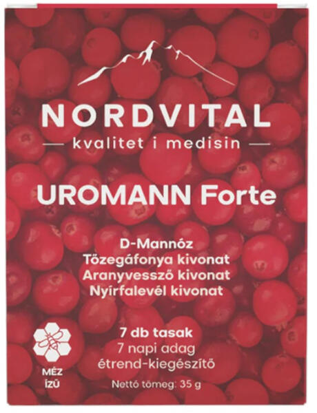 megelőzi a baktériumok tapadását támogatja a húgyúti egészséget elősegíti a vizeletáramlást Fedezze fel a Nordvital Uromann Forte Ivótasakot, egy speciálisan formulázott készítményt, amely a húgyúti egészség fenntartására és támogatására szolgál. Ez a forradalmi termék 7 ivótasakos kiszerelésben kínálja a természetes összetevők erejét, hogy hatékony megoldá