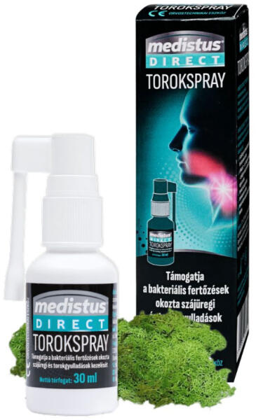Medistus® Direct Torokspray – A torokfájás rémálma! Megfáztál? Kapar a torkod? Ez a spray nem hagyja, hogy a bacik átvegyék az irányítást! A Medistus® Direct Torokspray izlandi zuzmóval és orvosi ziliznyálkával veszi fel a harcot a torokfájással – már 1 éves kortól! A természetes összetevők egyedi kombinációja antibakteriális és nyugtató hatásával védi a torok