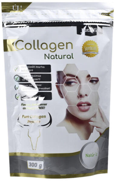 JutaVit Collagen Natural 300g – italpor. Ízesítetlen/Natúr íz. Hidrolizált kollagént tartalmazó étrend-kiegészítő készítmény. – Hidrolizált marha kollagén! – Nem tartalmaz aromát és színezéket! – Nem tartalmaz tartósítószert! – Cukormentes!A kollagén a bőrszövet egyik természetes alkotóeleme. A termékben található kollagén, nagy tisztaságú, természetes
