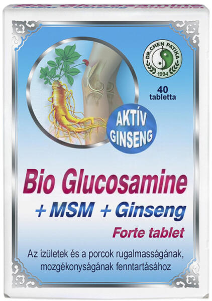 Glükozamin-szulfát és MSM (metil-szulfonil-metán) kombinációja Panax ginseng-gel. Jellemzők (fő hatóanyagok): glükózamin, MSM, Panax ginseng A ginseng hozzájárul a szellemi és fizikai erőnlét fenntartásához. Támogatólag hat a vérkeringésre, a vitalitára . Segít a fáradtság enyhítésében, és stressz esetén. Adagolás (felhasználás): napi 1 tabletta szedése 1-3 hóna