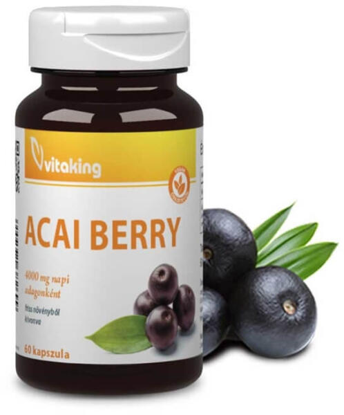 Vitaking Acai Berry gélkapszula 4000 mg - 60 db Vitaking® Acai Berry kivonat napi adagonként (2 kapszula) 400mg (4000mg Acai gyümölcsből). Minőség, és magas hatóanyag-tartalom! Az Acai Berry-t világon az egyik legtökéletesebb ételként tartják számon. Ez a sötétlila apró gyümölcs tele van értékes növényi tápanyagokkal. Kimagasló rosttartalmának, és alacsony cukortartal