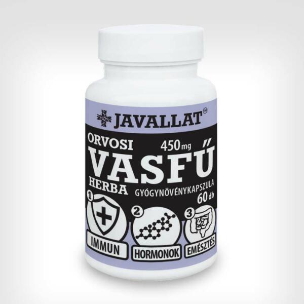 JAVALLAT ORVOSI VASFŰ HERBA kapszula 60db 60 db SonicFine® instant gyógynövényport tartalmazó kapszula, gyógyszerkönyvi minőségű gyógynövényből 1. Hatóanyagai fokozzák a külső és belső elválasztású mirigyek működését, ezzel hozzájárulnak az immunrendszer egészséges működéséhez. 2. Hormonszerű és egyéb hatóanyagai támogatják az egészséges menstruációt