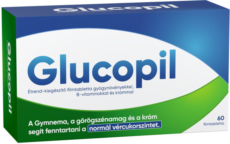 Glucopil étrend-kiegészítő gyógynövényekkel, b-vitaminokkal és krómmal filmtabletta 60 db A Gymnema, a görögszénamag és a króm segít fenntartani a normál vércukorszintet. A Glucopil a Gymnema sylvestre, a görögszénamag és a fehér eperfa kivonatának kombinációja B1-, B2-, B6-, B12- vitaminokkal és krómmal. · A Gymnema sylvestre levélkivonat segít fenntartani a normál