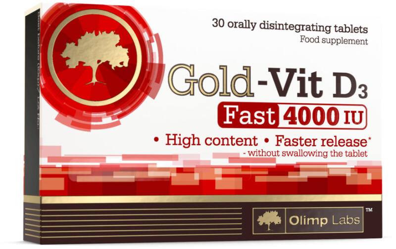 Olimp Labs Gold-Vit D3 Fast 4000 IU 30 tab . Nagy dózisú D-vitamint (D3) tartalmazó étrend-kiegészítő 4000 NE dózisban. Olimp Labs Gold-Vit D3 Fast 4000 IU 30 tab Olimp Labs Gold-Vit D3 Fast 4000 IU 30 tab . Nagy dózisú D-vitamint (D3) tartalmazó étrend-kiegészítő 4000 NE dózisban. A D3-vitamin (kolekalciferol) a D-vitamin egyik formája, amely alapvető szerepet játszik a szervez