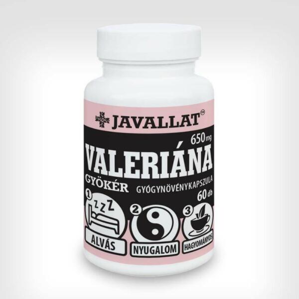 JAVALLAT VALERIÁNA GYÖKÉR (macskagyökér) kapszula 60db 1. Hatóanyagai hozzájárulnak a zavartalan, pihentető alváshoz. 2. Elősegíti nyugodt, ellazult, relaxált állapot elérését. 3. A valeriánát (macskagyökeret) évezredek óta fogyasztják kedvező élettani hatása miatt (figyelemhiány, krónikus fáradtság, ingerlékenység, migrén, menstruációs görcsök stb. ). EZÉRT