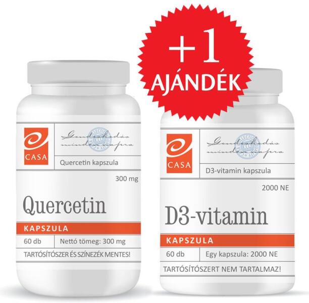 A Casa Quercetin erős antioxidáns hatású kvercetint tartalmaz, amely hozzájárul az immunrendszer erősítéséhez, a gyulladások csökkentéséhez és a sejtek védelméhez. Az ajándék Casa D3-vitamin további támogatást nyújt az immunrendszernek.
