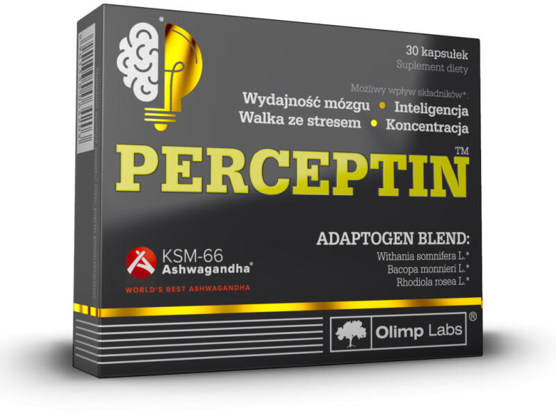 Az Olimp Labs Perceptin 30 caps termék , KSM-66 Ashwagandha gyökér, Bacopa és Rózsagyökér standardizált kivonatát tartalmazó étrend-kiegészítő kapszulákban. A készítményt a normál szellemi erőnlét megőrzésére törekvő felnőttek számára szánják. Különösen ajánlott krónikus stresszben szenvedőknek, akik intellektuális munkát végeznek, és tanulnak, és azoknak,