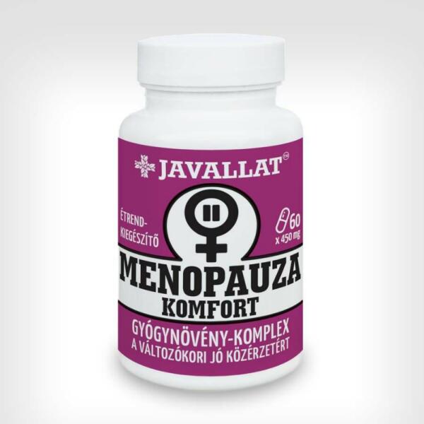 JAVALLAT® - MENOPAUZA KOMFORT kapszula 60 db 60 db szuperfinom instant gyógynövényport és illóolajat tartalmazó étrend-kiegészítő gyógynövénykapszula, bevizsgált, kiváló minőségű gyógynövényekből. Megújult formában, továbbfejlesztett tartalommal! Egymás hatását támogató gyógynövényekkel:Az orvosizsálya-levél , a komlótoboz , az orvosi vasfű herba, a valerián