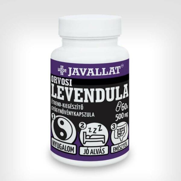 Javallat ORVOSI LEVENDULA kapszula 60db 60 db szuperfinom instant gyógynövényport tartalmazó étrend-kiegészítő gyógynövénykapszula, bevizsgált, kiváló minőségű gyógynövénybőlAz orvosi levendula egészségügyi hatásai: 1. Támogatja a nyugodt, kiegyensúlyozott szellemi és fizikai közérzet elérését. 2. Hozzájárul a jó minőségű, pihentető alváshoz. 3. Az emészt