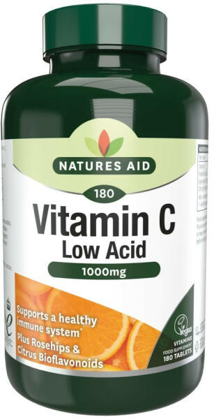 A Natures Aid alacsony savtartalmú 1000 mg-os C-vitamin tablettákban az aszkorbinsavat a C-vitamin kíméletesebb formáival, például kalcium-aszkorbáttal és nátrium-aszkorbáttal kombinálták, olyan terméket létrehozva, amely gyengéd a gyomornak, miközben tablettánként 1000 mg C-vitamint tartalmaz. Adagolás: naponta 1 tabletta étkezés közben. Kiszerelés: 90 db kapszula Natures