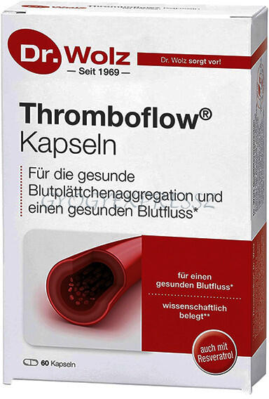Dr. Wolz Thromboflow étrend-kiegészítő készítmény segít a normál vérlemezke aggregáció fenntartásában, ami hozzájárul az egészséges vérkeringéshez. A vérhígító gyógyszerekkel ellentétben a Dr. Wolz Thromboflow kapszulának nincs ismert mellékhatása. Nem helyettesíti az orvos által felírt vérhígító gyógyszert, azonban a kapszula az eltérő hatásmechanizmus miat