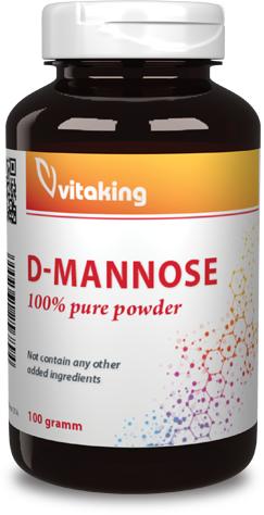 D-mannose por A Vitaking D-mannose por 100g-os kiszerelésben kapható. 100% D-mannóz, semmilyen egyéb hozzáadott adalékanyagot nem tartalmaz. A D-mannose (d mannóz) egy természetben előforduló egyszerű cukormolekula ami hasonlít a glükóz molekulára, de csak nagyon kis mennyiségben szívódik fel a szervezetünkben. Nagy része a vesén keresztül kerül kiválasztásra és a vizelet