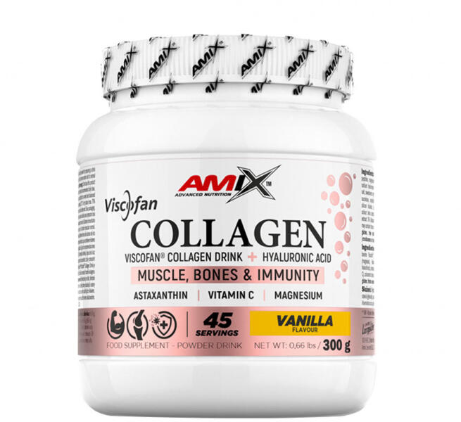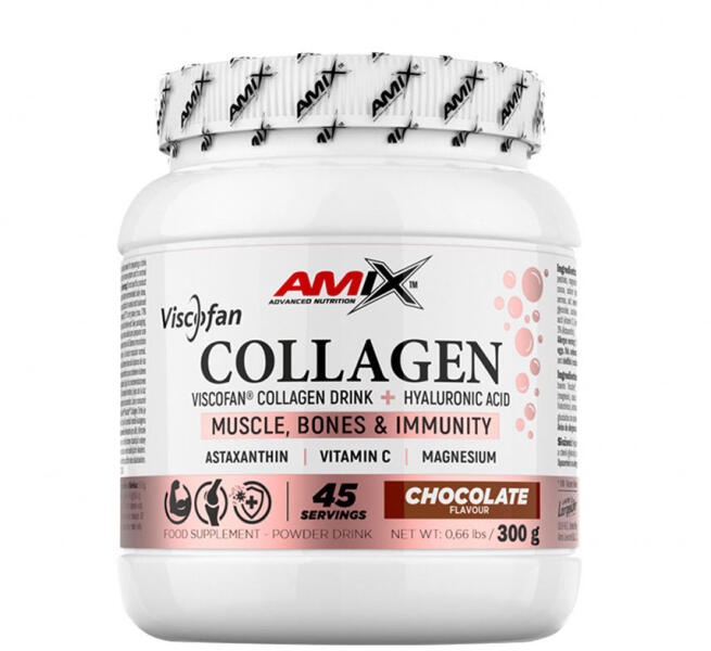 IZOM, CSONTOK ÉS IMMUNITÁS Oldható por ital készítéséhez Viscofan szarvasmarha kollagén peptidek, hialuronsav, asztaxantin, magnézium és C-vitamin alapú ital. Az Amix Viscofan® Collagen Drink egy oldható por ital készítéséhez, amely Viscofan® szarvasmarha kollagén peptideken, hialuronsav, asztaxantin, magnézium és C-vitamin alapú. A C-vitamin hozzájárul az immunrendszer nor