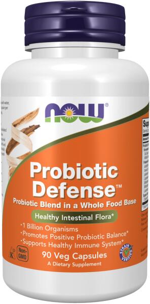 Probiotikus védelem, Probiotic Defense, 90 db, Now A Now Probiotic Defense egy komplex probiotikum, amely segít a bélflóra egyensúlyának fenntartásában. A termék 90 db-os kapszulákat tartalmaz, melyekben 10 milliárd élő baktérium található. Ezek a baktériumok segítenek az egészséges emésztőrendszer fenntartásában és támogatják az immunrendszer működését is. A termék