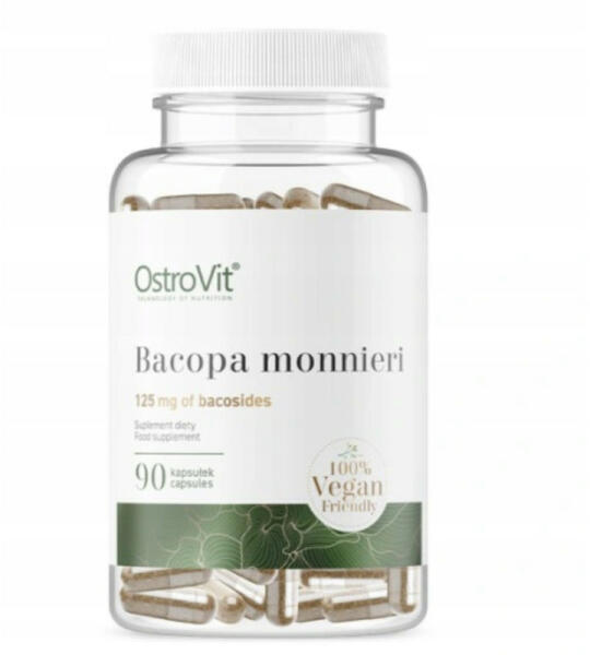 VEGETÁRIUSOK ÉS VEGÁNOK SZÁMÁRA ALKALMAS Kiváló minőségű étrend-kiegészítő, amely bacopa monnieri kivonatot tartalmaz 50% bakozidra standardizálva. Vegán Az OstroVit Bacopa Monnieri VEGE egy kiváló minőségű étrend-kiegészítő, amely 50%-ban bacosidokra standardizált bacopa monnieri kivonatot tartalmaz. Könnyen lenyelhető kapszula formájában kapható vegán készítmén