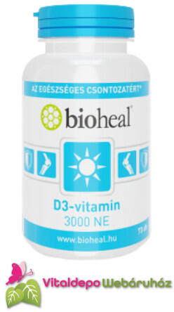 D3-vitamin 3000NE étrend-kiegészítő lágykapszula. Az egészséges csontozatért és a daganatos betegségek megelőzéséért! A D-vitamin nélkülözhetetlen a kalcium és a foszfor normál felszívódásához, az egészséges csontozat fenntartásához, valamint az immunrendszer normál működéséhez. A BIOHEAL lágykapszula nagy dózisú D3-vitamint tartalmaz. A különféle D-vitaminok
