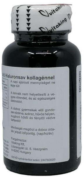 Hialuronsavat és kollagént tartalmazó készítmény. 60 db-os kapszula; Vitaking termék a természetes szépség támogatásához.