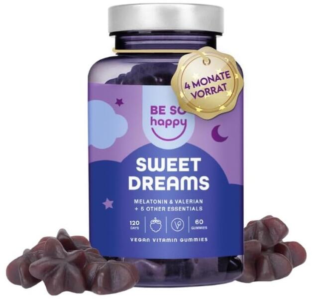 A Be so happy Sweet Dreams 60 gumicukor egy ízletes étrend-kiegészítő, amely a minőségi alvás és a relaxáció elősegítésére lett kifejlesztve. Ezek a gumicukrok olyan természetes összetevőket tartalmaznak, mint a melatonin és gyógynövénykivonatok, amelyek befolyásolják a stresszt és a feszültséget, ezáltal elősegítik a nyugtató és mély alvást. Kellemes és kényelm