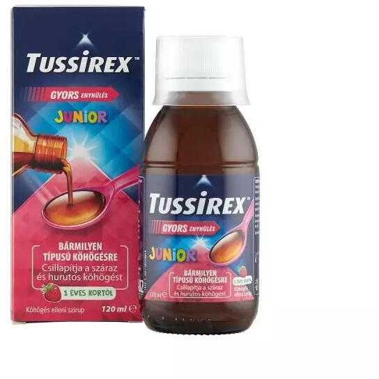 A Tussirex Junior megbízhatóan és gyorsan enyhíti a megfázással járó száraz és hurutos köhögést egyaránt. Továbbá segít megvédeni a száj- és a garatnyálkahártyát azok szárazsága esetén. Gyors enyhülés Bármilyen típusú köhögésre Csillapítja a száraz és hurutos köhögést Nem tartalmaz mesterséges színezéket, alkoholt, laktózt, glutént és genetikailag mód