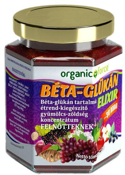 100% természetes gyümölcs-zöldségsűrítmény béta-glükánnal. Felnőtteknek és 12 éven felüli gyerekeknek. 210 g-os koncentrátum; Organic Force termék a fertőző betegségekkel szembeni védelemért