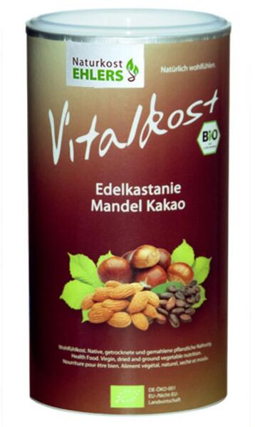 Az Ehlers Vitalkost Kakaó Gesztenye Mandula egy különleges natív élelmiszer, amely a természetes összetevők tökéletes harmóniáját kínálja. Az amaránt és quinoa gazdag tápanyagforrásként támogatja az energiaszintet, míg a kakaó, gesztenye és mandula kellemes ízvilága és antioxidáns hatása teszi teljessé ezt az egészséges keveréket.