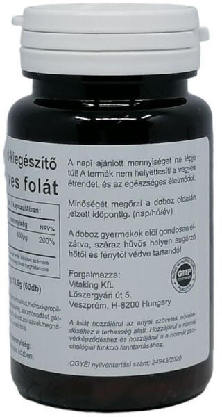 A folát a folsav természetben előforduló formája. Folátra minden olyan életműködésnél szükség van, amelyben sejtosztódás következik be. 60 db-os kapszula; VitaKing termék folsavpótláshoz.