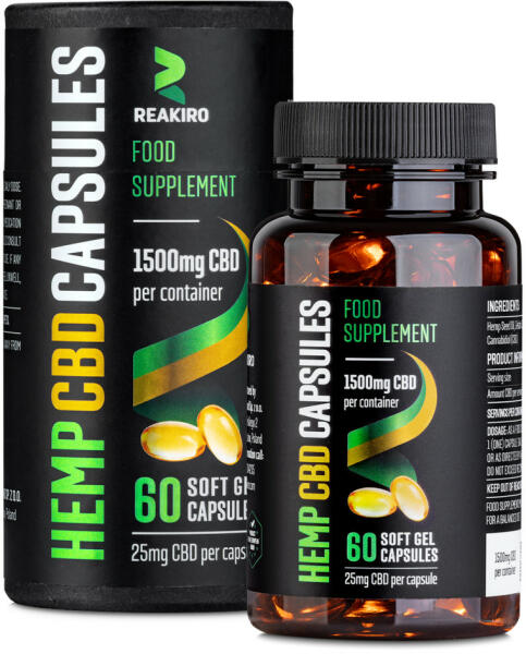 Reakiro teljes spektrumú CBD kapszula 60 db kapszula, összesen 1500 mg CBD 1 kapszula - 25 mg Reakiro CBD kapszula 25 mg Magas minőségű ipari kenderből készült, darabonként 25 mg CBD-tartalmú teljes spektrumú kapszula. Kizárólag természetes összetevőket tartalmazó, peszticidektől és nehézfémektől mentes készítmény. Miért jó a CBD gélkapszula? A Reakiro CBD kapszulák se