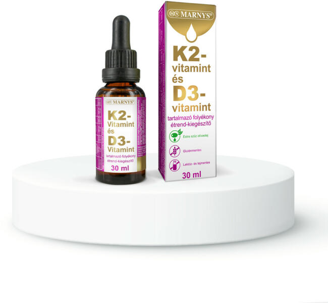 MARNYS® K2-VITAMIN és D3-VITAMIN - A csontrendszer barátja Semleges ízű folyékony étrend-kiegészítő, amely olívaolajban oldva tartalmazza folyékony hatóanyagait, a D3-vitamint és K2-vitamint. Folyékony vitamin gyerekeknek a D vitamin hiány elkerülése érdekében K2- és D3-vitamint tartalmazó, s emleges ízű folyékony étrend-kiegészítő, extra szűz olívaolajjal . 7 éves