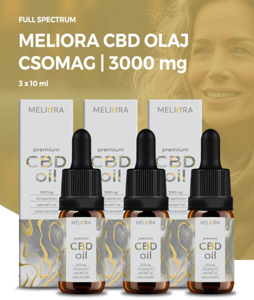 Terpénekben, flavonoidokban és kannabinoidokban gazdag kender kivonatok, összesen 3000 mg CBD tartalommal Meliora Teljes Spektrumú 10% CBD csomag 3000 mg hatóanyag-tartalommal A Meliora teljes spektrumú 10% kannabisz olaj csomag 3 x 10 ml-es kiszerelésben 3000 mg CBD-t tartalmaz , amely természetes megoldást nyújthat a mindennapi stressz kezelésére, alvásproblémákra és enyhe fájda