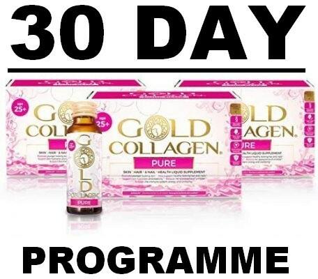 A Gold Collagen Pure folyékony étrend-kiegészítő a 20 és 40 év közötti nők számára ajánlott a fiatalos megjelenésük és vitalitásuk megőrzéséhez. 50ml (1 doboz=10 db) A tablettáknál 20x hatékonyabb hatású, Japánban gyártott, prémium minőségű, magas kollagén tartalmú étrend-kiegészítő. 11 aktív hatóanyagot (halkollagént, hialuronsavat, vitaminokat és ásvány