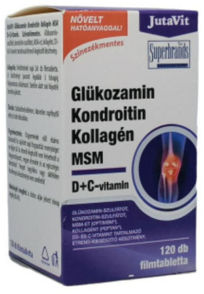 JutaVit Glükozamin-szulfát + Kondroitin-szulfát Kollagén MSM D+C filmtabletta 120db részletes leírása Javasolt ízületi betegség, vagy fokozott ízületi terhelés következtében kialakuló porc-, valamint ízületi rendellenességek esetén a különleges táplálkozási igény kielégítésére. 120 db-os filmtabletta; Jutavit termék az ízületek egészségéért. A Jutavit Glükozam