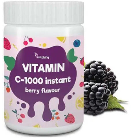 Vitaking Instant C-1000mg Berry 150 g Prémium kategóriás, minőségi C-vitamin készítmény rengeteg citrus bioflavonoiddal, acerolával és csipkebogyóval kiegészítve. Minden egyes tabletta nagyon sok citrus bioflavonoidot tartalmaz, valamint sok acerola és csipkebogyó található benne. A c-vitamin bizonyítottan hatásos lehet sokféle egészségügyi probléma kezelésében. Többek k