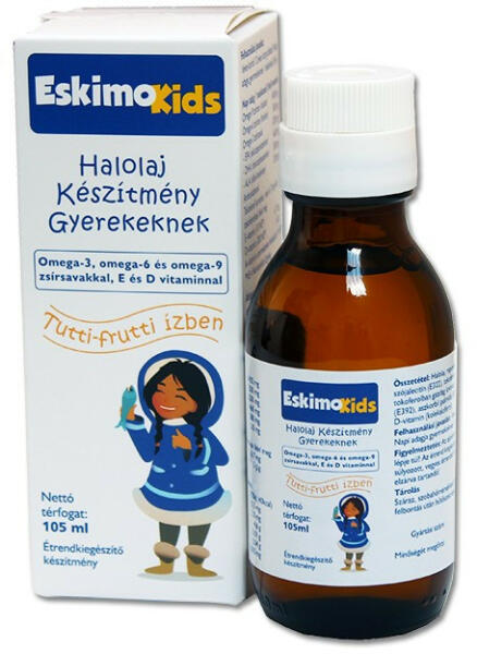 Gyermekeknek készült prémium minőségű omega-3-6-9 termék 1 éves kortól. Átlagon felüli EPA-DHA tartalmának köszönhetően kiemelkedő hatékonyságú, biztonságos, természetes készítmény. Magas E- és D-vitamin tartalmú, laktóz, glutén, tejcukor mentes. Az Eskimo Kids gyerekeknek készült étrend-kiegészítő halolaj készítmény 1 éves kortól. A halolaj hidegvízi, mély