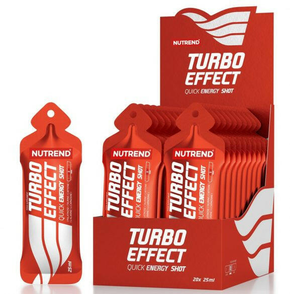 A Nutrend Turbo Effect Shot 1 karton (25mlx20db) ideális kiegészítő a magas pulzusértékű sportoknál a teljesítmény növeléséhez, gyors energiaellátáshoz. NUTREND TURBO EFFECT SHOT 25 ML Az új TURBO EFFECT SHOT gyors és minőségi energiát biztosít folyadékban formában. Gyors energiaforrású glükóz alapú formula, lassan felszívódó Palatinose TM szénhidráttal kombinálva