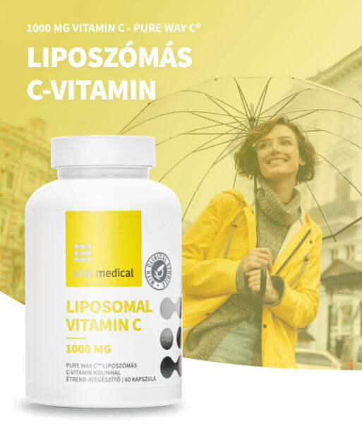 USA medical Pure Way-C liposzómás C-vitamin 1000 mg A Liposomal Pure Way C egy korszerű, liposzómás technológiával készült C-vitamin formula. Mivel a liposzómás eljárás hatására a C-vitamin apró, foszfolipid burokkal körülvett állapotban kerül az emésztőrendszerbe, felszívódása és biológiai hasznosulása magasabb, mint a hagyományos C-vitaminoké. Klinikai vizsgálatok