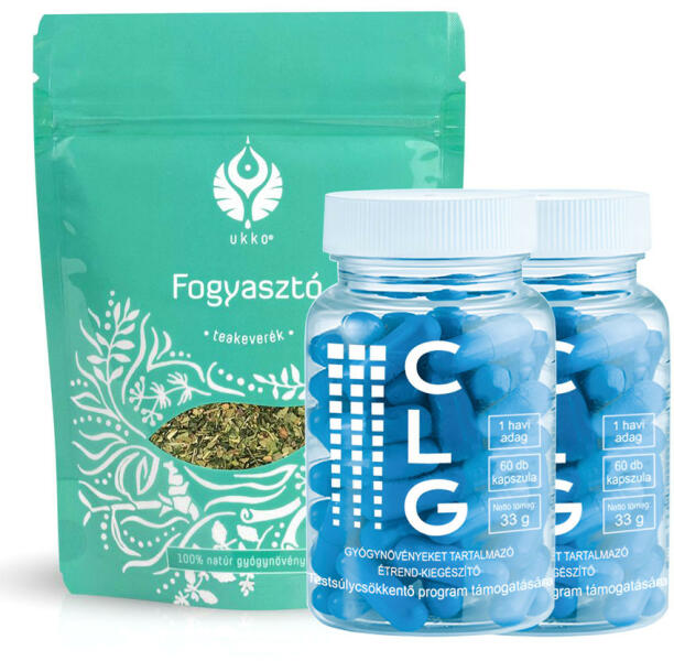 A testsúlycsökkentés és a fogyás megvalósításáért egy ösztönző csomagot állítottunk össze: 2 doboz CLG gyógynövényeket tartalmazó étrendkiegészítő a testsúlycsökkentő program támogatására. CLG kapszula, a testsúlycsökkentő innovátor, Nyári Darinka ajánlásával. Új dimenzió a testsúly változásban! Az UKKO Fogyasztó Teakeverék egy 100% natúr, biztonságos