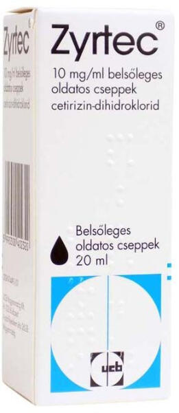 A Zyrtec egy allergia elleni gyógyszer, hatóanyaga a cetirizin-dihidroklorid. Jellemzők A Zyrtec hatóanyaga a cetirizin-dihidroklorid. A Zyrtec egy allergia elleni gyógyszer. A Zyrtec 10 mg/ml belsőleges oldatos cseppek felnőttek, valamint 2 éves és idősebb gyermekek és serdülők alábbi tüneteinek kezelésére javasolt: időszakos (szezonális) és egész éven át tartó allergiás