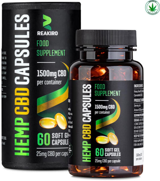 Terpénekben, flavonoidokban és kannabinoidokban gazdag kender kivonatot tartalmazó CBD kapszula, összesen 1500 mg hatóanyag-tartalommal Reakiro CBD kapszula 1500 mg hatóanyag-tartalommal A Reakiro teljes spektrumú kannabisz olaj kivonatot tartalmazó 60 db kapszulában összesen 1500 mg CBD található, kapszulánként 25 mg hatóanyag-tartalommal . A teljes spektrumú formula magában fogl