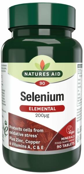 A Natures Aid Szelén komplex 200 g szelént biztosít tablettánként. A termékben szelént kiegészítő tápanyagokkal kombinálták az egyedi és praktikus napi táplálékkiegészítés érdekében; A-vitamint béta-karotin formájában, C-vitamint és E-vitamint, valamint cinket tartalmaz. A termék vegánok számára is megfelelő készítmény. Kiszerelés: 90 darab tabletta Natures Aid S