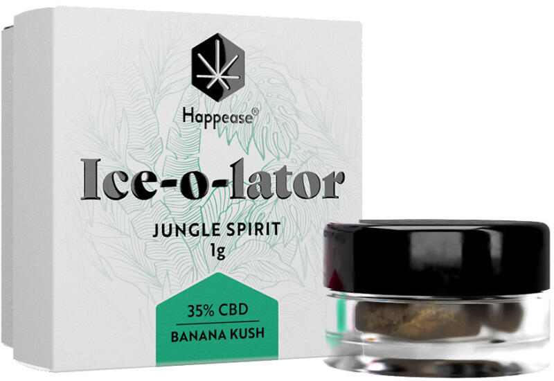 Banana Kush 35% CBD kivonat 1 g Happease Jungle Spirit 35% CBD Az Ice-o-lator 35% CBD – Banana Kush egy magas hatékonyságú, kivételes minőségű CBD kivonat, amely 35%-os CBD tartalmával ideális választás a teljes nyugalom és mély relaxáció eléréséhez. Az Ice-o-lator eljárásnak köszönhetően a kivonat rendkívül tiszta és koncentrált, megőrizve a növény természetes hat