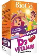 2000 NE D3-vitamint tartalmazó, cseresznye ízű étrend-kiegészítő rágótabletta cukorral és édesítőszerekkel.