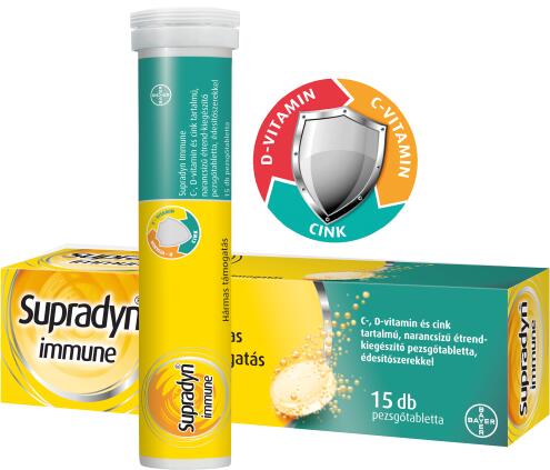 A Supradyn Immune pezsgőtabletta vitaminokat és nyomelemet tartalmazó étrend-kiegészítő.