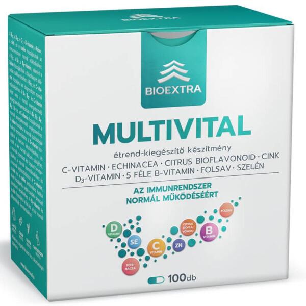 A Bioextra Multivital egy innovatív, magas hatóanyag-tartalmú multivitamin készítmény, amely célzottan támogatja az immunrendszert, miközben hozzájárul a normál idegrendszeri működéshez és az energiaszint fenntartásához. Komplex összetétele révén hatékonyan védi sejtjeinket.